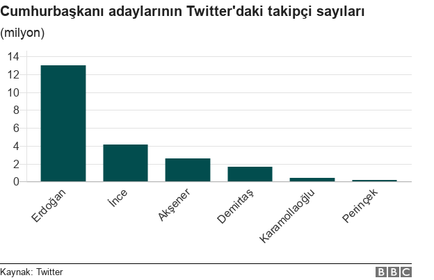 CHP’nin cumhurbaşkanı adayı Muharrem İnce’nin Twitter’da 4 milyondan fazla takipçisi var. İnce, adaylığının resmi olarak açıklandığı 4 Mayıs’tan sonraki bir aylık süreçte 203 tweet attı. Muharrem İnce, siyasetin yanı sıra futbol dâhil farklı konularda da yorumlar yapıyor. Fizik öğretmenliğinden geliyor olması da bunda etkili. Fizik ve bağlantılı konular ile Endüstri 4.0 etrafında, kuantum ışığında bir çizgi izliyor izlenimi veriyor. Muharrem İnce, seçim kampanyalarına âdil olarak yer verilmediğini savunarak, protesto için de Twitter’ı kullanmayı tercih ediyor.