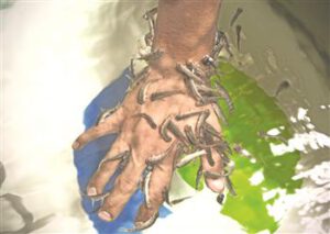 The practice of using the toothless garra rufa fish as a treatment for skin diseases became popular in Asia in 2006. But Saleh found in his research that it originated decades ago in Iraq’s neighbor, Turkey. He traveled there earlier this year and imported 600 of the fish at a cost of about $10,000.