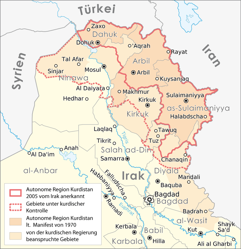 (IKBY) Kürdistan Bölgesel Yönetimi,Irak’ın kuzeyinde bulunan bölge de 11 Mart 1970’de Saddam Hüseyin ve Mustafa Barzani arasında yapılan anlaşma üzerine kuruldu. Özerklik anlaşmasına göre Irak’ın kuzeyindeki üç il, yaklaşık 37 000 km²’lik bir bölge, Erbil’de kurulacak bir yerel parlamento tarafından yönetilecekti. Bunun yanı sıra Irak Meclisinde 5 bakan ve başbakan vekili Kürt olacaktı. Kürtçe, ülke genelinde Arapça’nın yanı sıra ikinci resmî dil olacaktı.1996 Yılından itibaren de Oğul Mesud Barzani tarafından yönetilen bölge Türkiye ile yakın ilişkiler içerisinde olup,Özellikle yıllarda Mesut Barzani önderliğinde ki Bölgesel Kürt Yönetimi hem Askeri hem de Ticari yönden sıcak ilişkiler içerisinde.